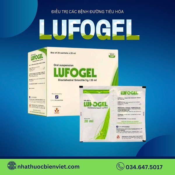 Thuốc Lufogel là thuốc đường tiêu hóa được sản xuất bởi Công ty CP Dược phẩm Đạt Vi Phú (DAVIPHARM) tại Việt Nam. Lufogel được bào chế dưới dạng hỗn dịch uống. Mỗi gói thuốc chứa 3g Dioctahedral smectite với dung tích 20ml (hộp 20 gói x 20ml).