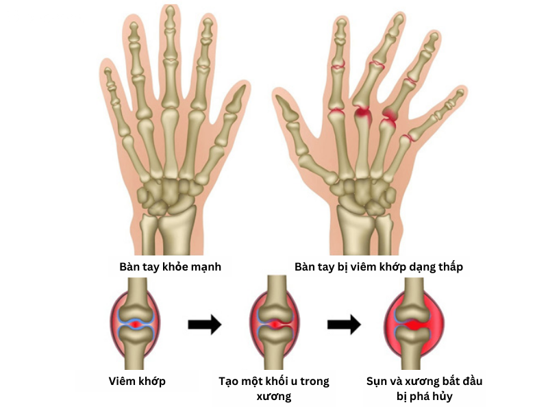 Viêm khớp dạng thấp hay còn gọi là viêm đa khớp dạng thấp, là một bệnh lý mạn tính do rối loạn tự miễn trong cơ thể gây nên. Tổn thương cơ bản trong viêm khớp dạng thấp là màng hoạt dịch khớp, gây sưng đau cuối cùng có thể dẫn đến hủy xương và biến dạng khớp ảnh hưởng rất lớn đến sinh hoạt hàng ngày như viết, mở chai lọ, mặc quần áo và mang vác đồ vật.